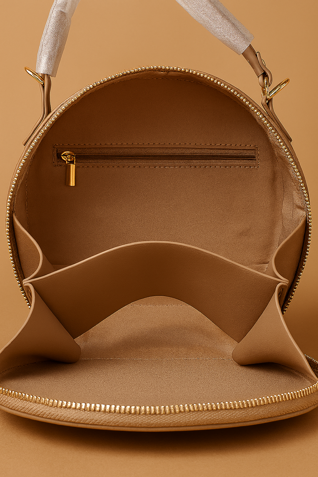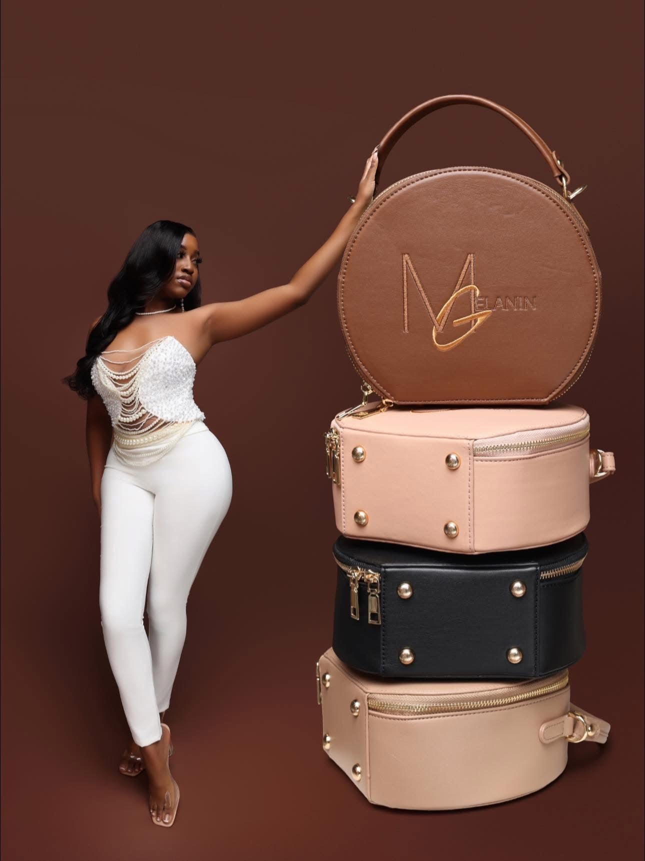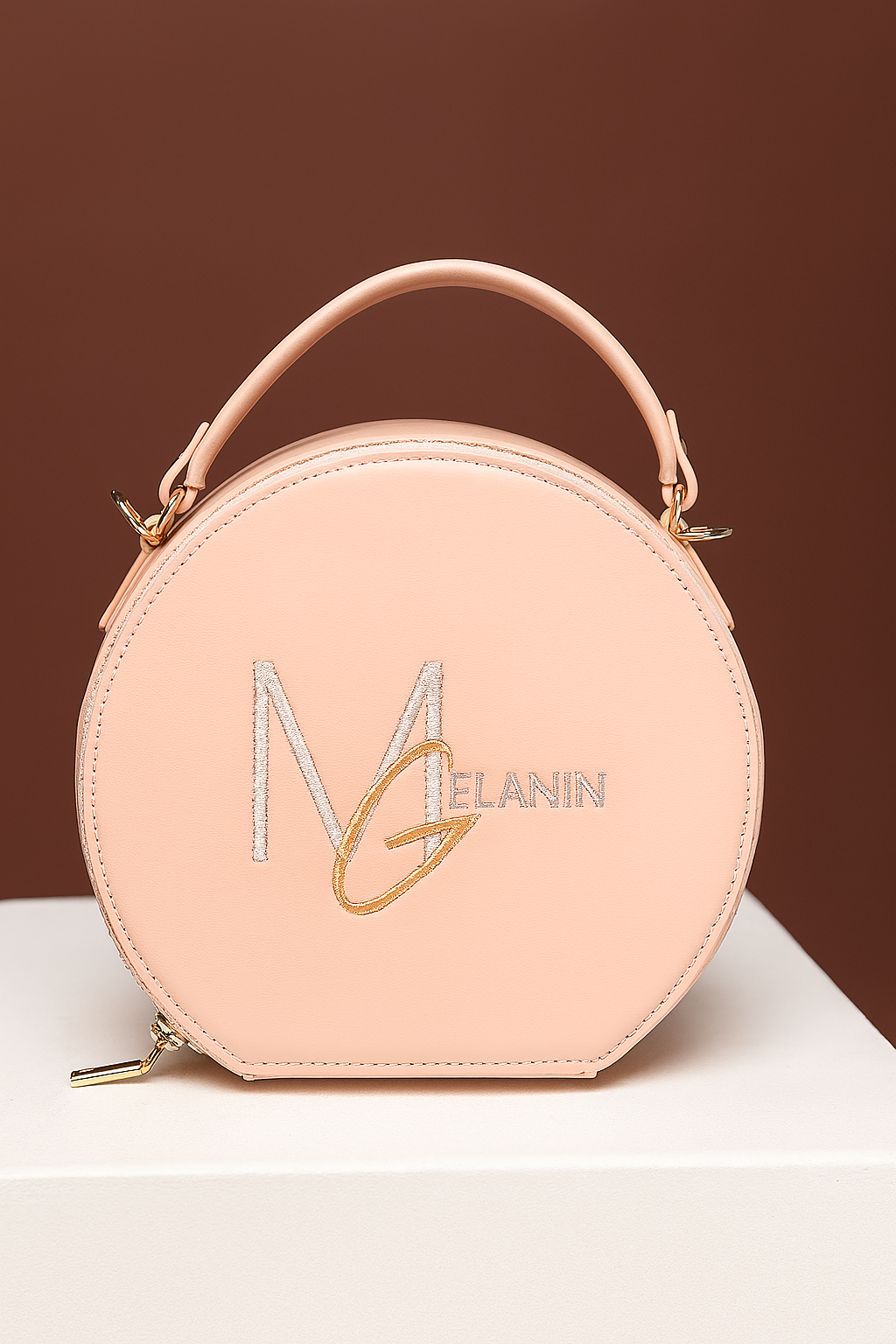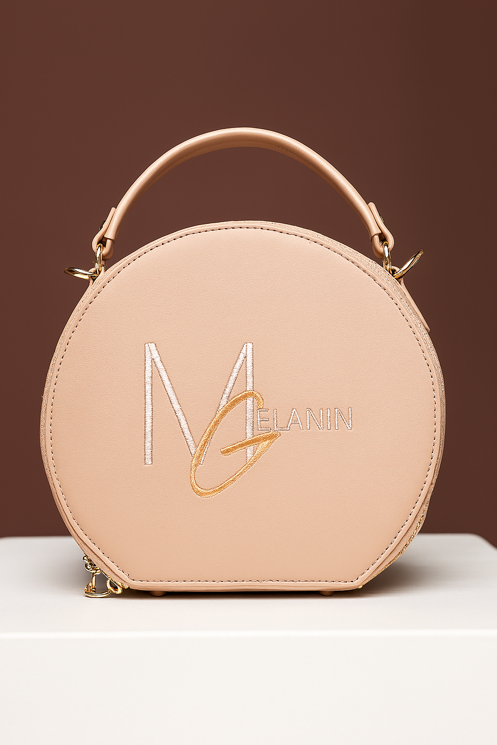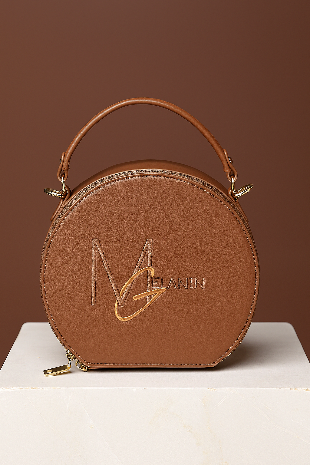 Introducing our chic and stylish circular handbags, made from high-quality vegan leather. These bags feature the initials 'mg', adding a personalized touch. The color, a beautiful shade of melanin, represents diversity and inclusivity. Notably, these are crossbody purses, offering a unique style statement. Perfect for the fashion-forward individual who values ethical materials and standout style.