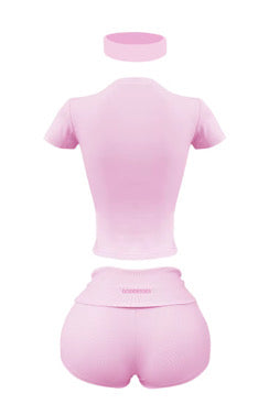 This set includes a matching short-sleeve shirt, fitted shorts, and a stylish headband—made from premium activewear material that moves with you. True to size and designed to hug your curves in all the right places, it’s perfect for working out or stepping out. Feel supported, look snatched, and stay on trend.