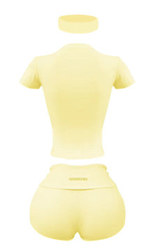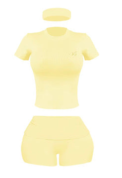 This set includes a matching short-sleeve shirt, fitted shorts, and a stylish headband—made from premium activewear material that moves with you. True to size and designed to hug your curves in all the right places, it’s perfect for working out or stepping out. Feel supported, look snatched, and stay on trend.