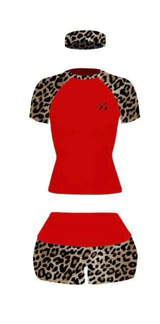 Red leopard luxe 3 piece short set