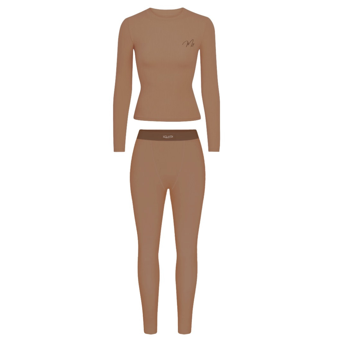 Nude ribbed long sleeve set